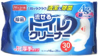 【07.02登録】エムズワン 流せるトイレクリーナー 【厚手タイプ】 (30枚入り) 【いつでもお買い得】価格: 98円レビュー評価: 2.5 レビュー数:2 名 称M's one エムズワン 流せる トイレクリーナー 内容量 30枚 サイズ 約16cm×25cm 特 徴 ★1枚でラクラク 清潔&除菌 Ag+ 銀イオン配合 ★使いやすい 厚手タイプ ◎1枚でトイレ内の汚れをきれいに落とせます。 ◎使用後はそのままトイレに流せる水解ペーパーです。 ◎除菌・消臭効果で、トイレ内を清潔に保ちます。 ◆つめかえ不要のフタ付パック ◎表のフタを指でつまんで開け、1枚ずつ取り出してお使いください。 ◎使用後は乾燥しないように、必ずフタをきちんとしめてください。 品質表示 材質:パルプ100% 成分:水、エタノール、界面活性剤、除菌剤、銀イオン水 用 途 ■便器・ |