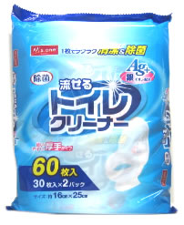 【07.02登録】エムズワン 流せるトイレクリーナー 【厚手タイプ】 (30枚入り×2パック) 【いつでもお買い得】価格: 189円レビュー評価: 4.0 レビュー数:1 名 称M's one エムズワン 流せる トイレクリーナー 【30枚入×2パック】 内容量 60枚入 30枚入×2パック サイズ 約16cm×25cm 特 徴 ★1枚でラクラク 清潔&除菌 Ag+ 銀イオン配合 ★使いやすい 厚手タイプ ◎1枚でトイレ内の汚れをきれいに落とせます。 ◎使用後はそのままトイレに流せる水解ペーパーです。 ◎除菌・消臭効果で、トイレ内を清潔に保ちます。 ◆つめかえ不要のフタ付パック ◎表のフタを指でつまんで開け、1枚ずつ取り出してお使いください。 ◎使用後は乾燥しないように、必ずフタをきちんとしめてください。 品質表示 材質:パルプ100% 成分:水、エタノール、 |